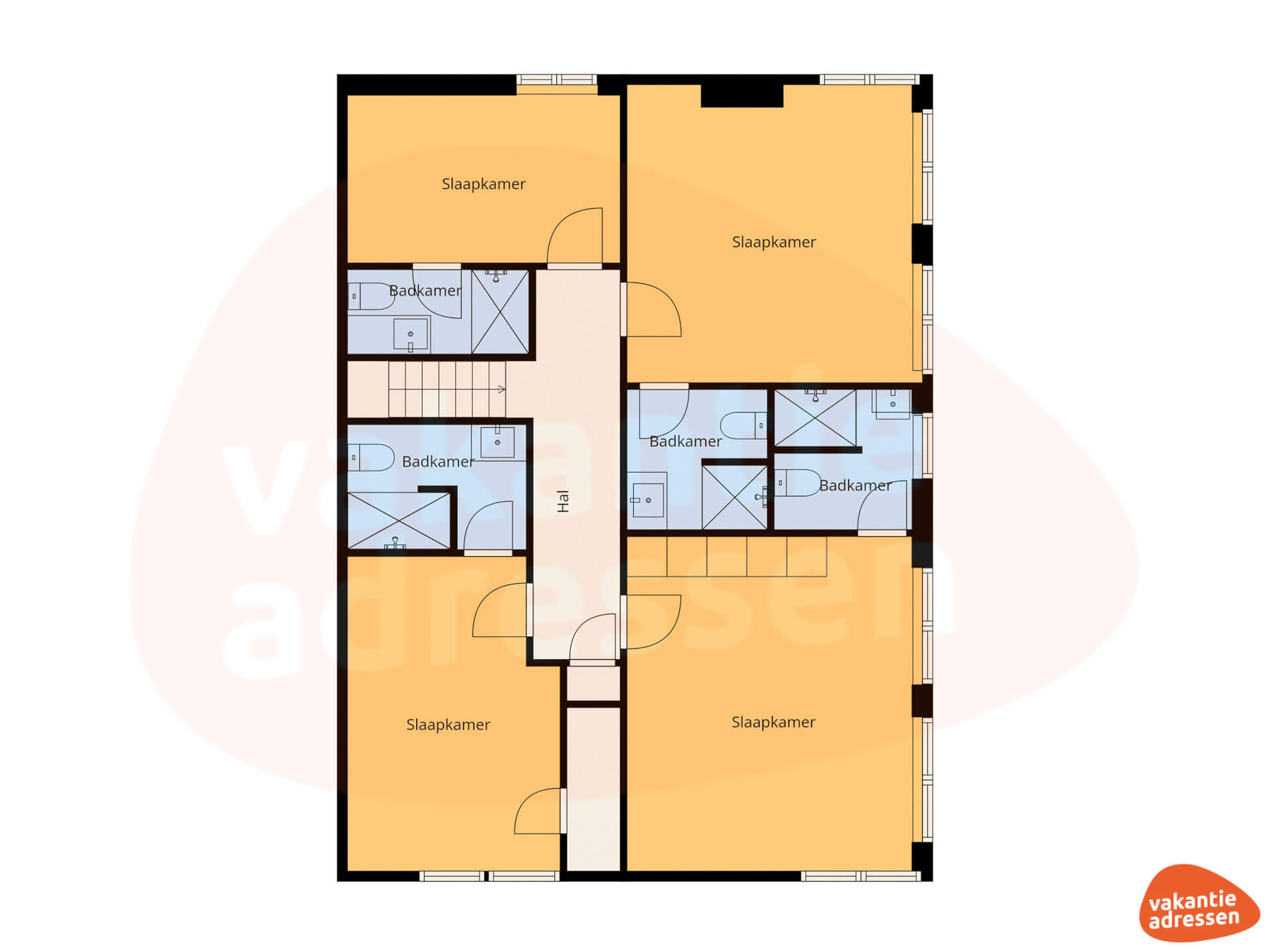 Slaapkamer 7: 1x 2-persoonsbed + douche, toilet en wastafel