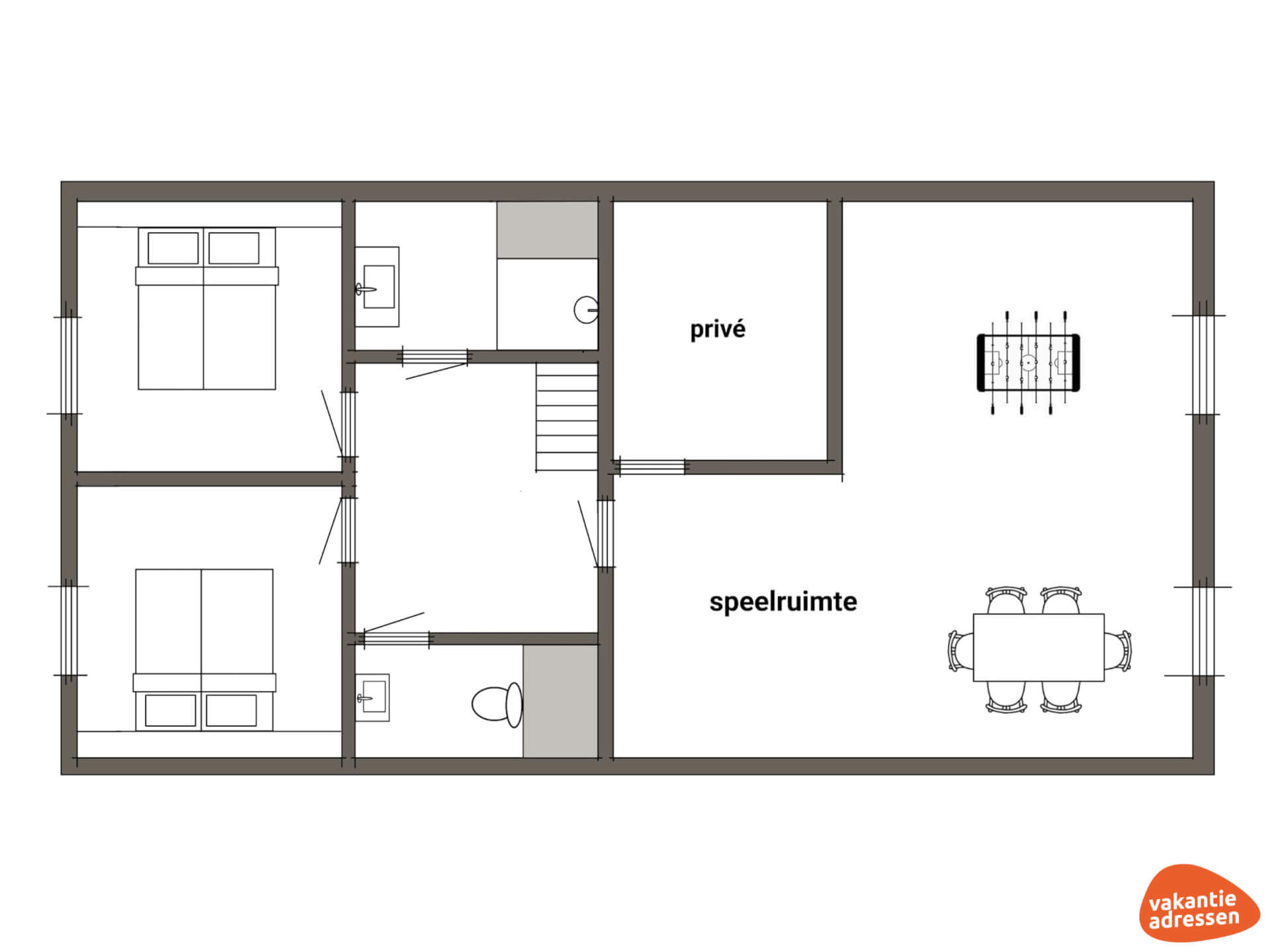 Op onze websites worden vanuit privacy overwegingen geen adresgegevens van vakantieadressen getoond. Op de kaart bij 'Locatie vakantieadres & overzicht Groepsactiviteiten' vind je een nauwkeurige weergave van de locatie van het vakantieadres. Na je boeking ontvang je de adresgegevens van de verhuurder.